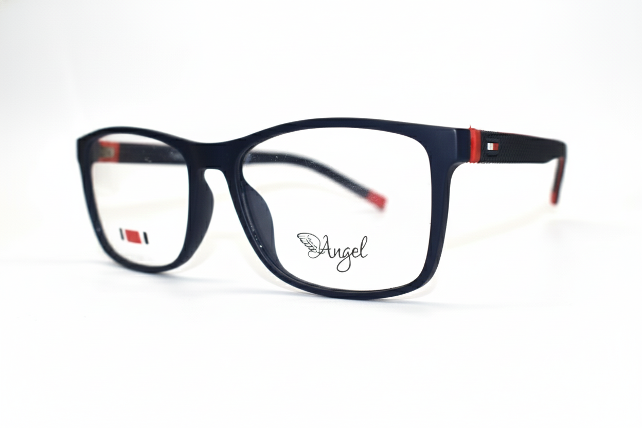 Montura de gafas en color azul, con diseño cuadrado estilo, ligera, moderna y perfecta para un look masculino y elegante.