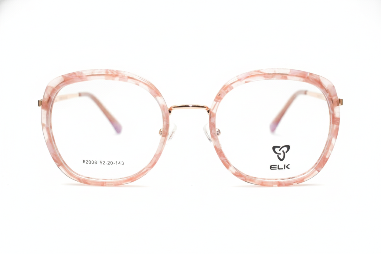 Adopta un look boho-chic con estas atrevidas gafas de vista extra grandes (oversize). La silueta es un clásico círculo perfecto, pero el color la convierte en una pieza statement: presenta un sofisticado patrón marmolado en tonos Rosa Pastel y Blanco. El puente metálico en dorado y las varillas finas añaden un toque de ligereza y elegancia.